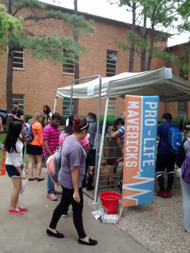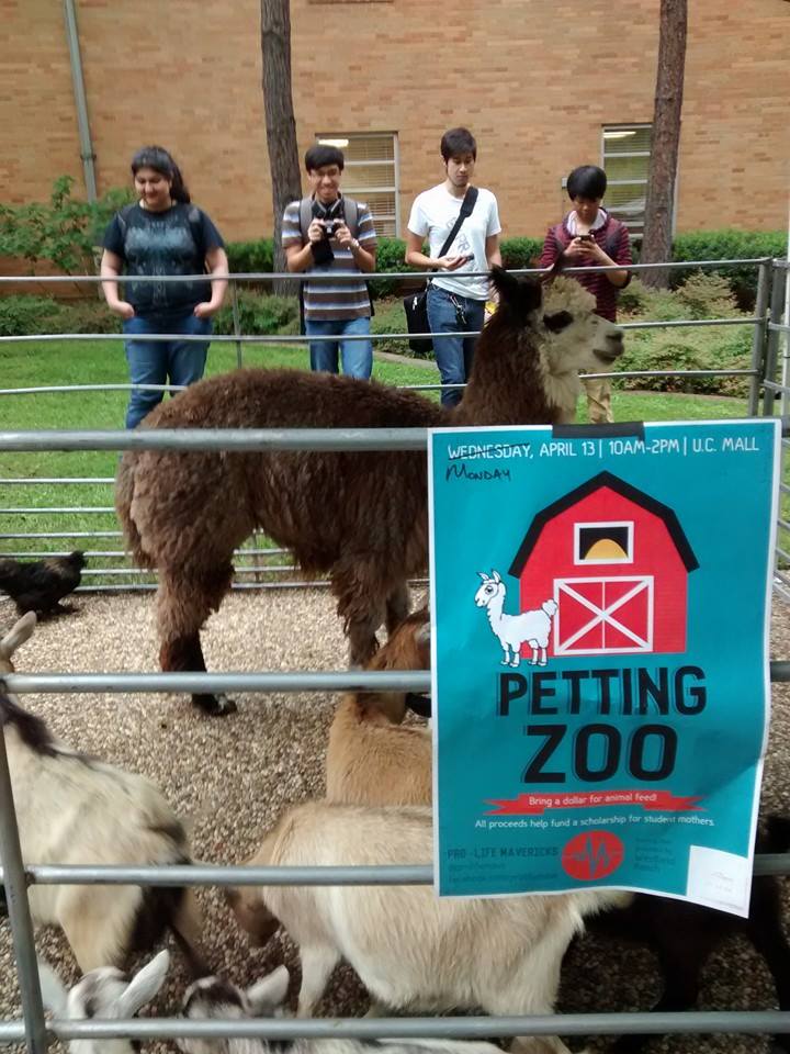 When asked how they have supported this effort, group president, Ben Carlton, shared, “We have held a fundraiser at the International Food Fair at UTA this past Spring, and, of course, the petting zoo. A future fundraiser we are currently planning is a Pro-Life 5K run to be held in Spring 2016. We are currently looking for donors who would be interested in helping fund the Pregnant and Parenting Scholarship. The donors would have their brands on the T-shirts for the 5K run event and we are considering the possibility of tabling at the event as well.”